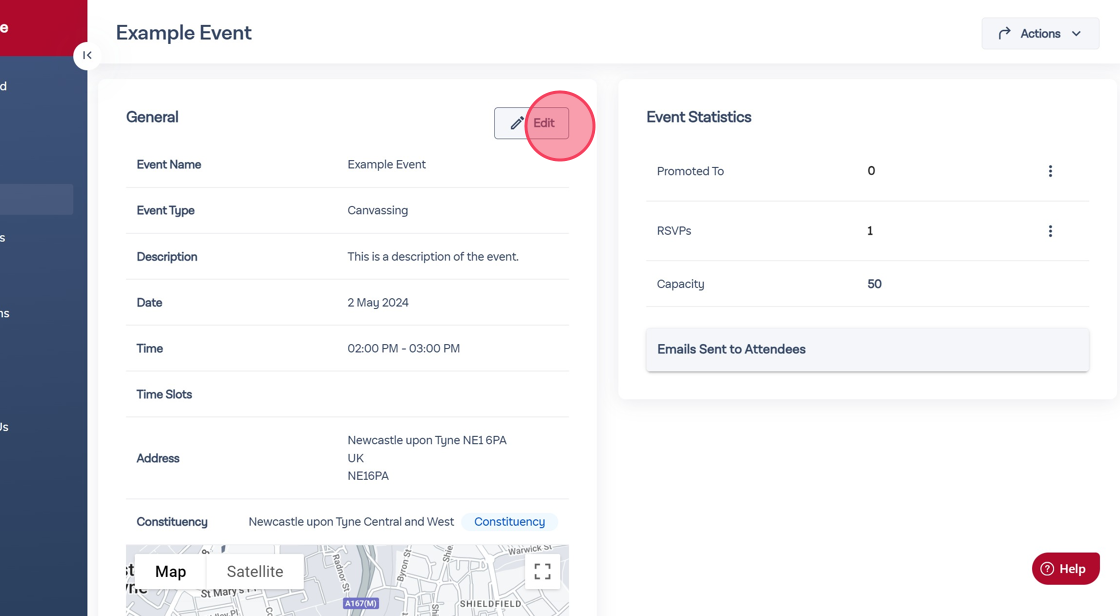 4. In the events management page you can amend your event details and administer RSVPs. Click 'Edit' to change any details such as name, description, date and time.