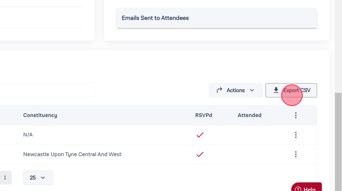 10. You can export your RSVPs by clicking 'Export CSV'.